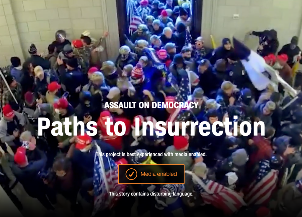 Seven people who played a role in the January 6th insurrection. This interactive project showcases their stories through social media posts, video interviews and strong writing.